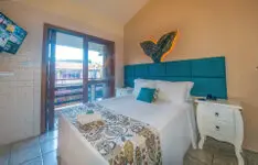 Todos os anos recebemos a visita ilustre das baleias- francas que encantam nossos olhos com suas aparições. Em função disto resolvemos homenageá-las criando a Suíte da Baleia que possui uma confortável cama Queen, mezanino e uma sacada com vista para o mar.